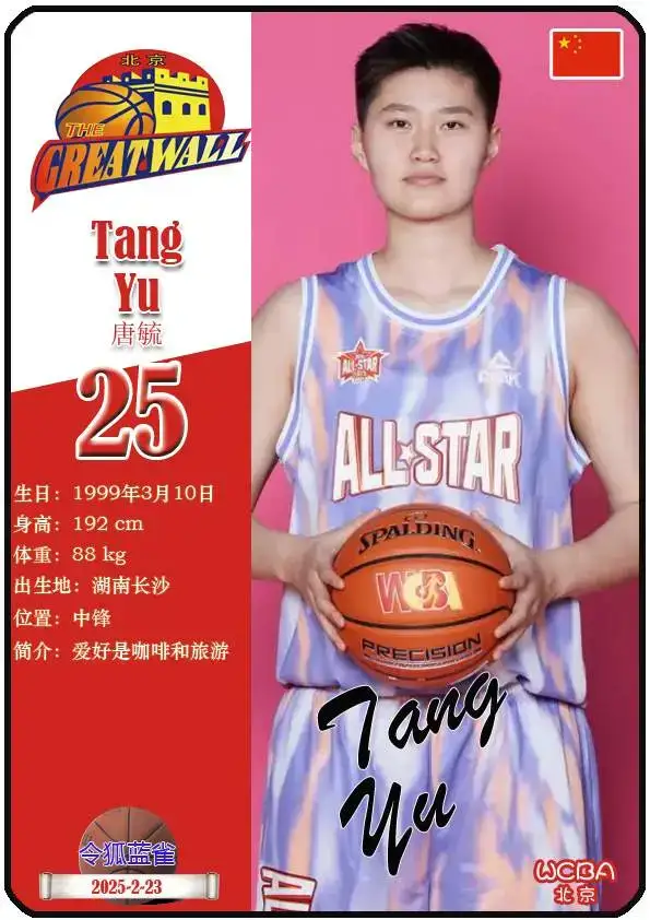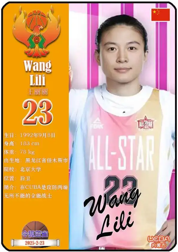 2024/25赛季WCBA全明星正赛比赛时间为2025年2月23日(周日)晚19点30分。比赛地点为浙江杭州。南北区各12人,包括5名首发和7名替补球员。本期盘点2024/25赛季WCBA全明星正赛24人(按球衣号码及中文姓名拼音字母排序):